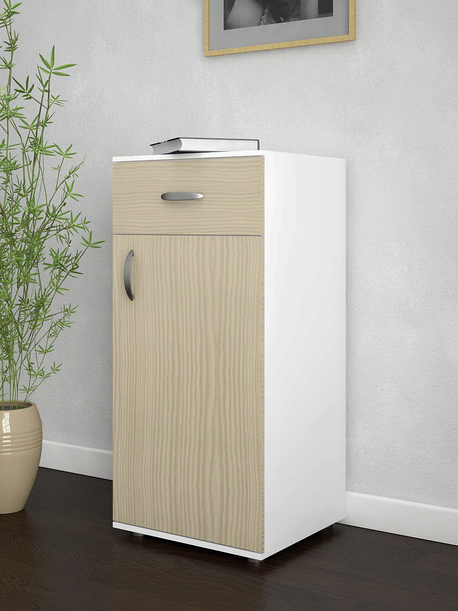 Schrank 1 Tür 1 Schublade 45 x 40 x 85 cm in Weißholz und Ulme