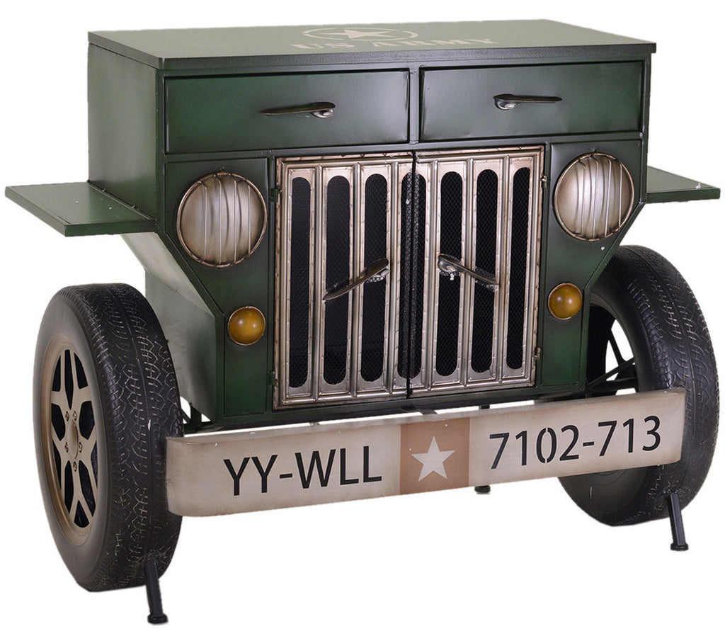 Schrank 2 Türen 2 Schubladen aus Metall Adami Auto Grün