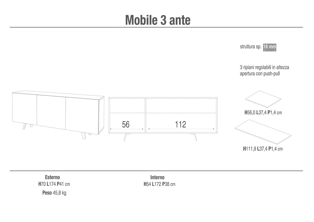 Schrank 3 Türen 174x70x41 cm Zement/Glänzend Weiß
