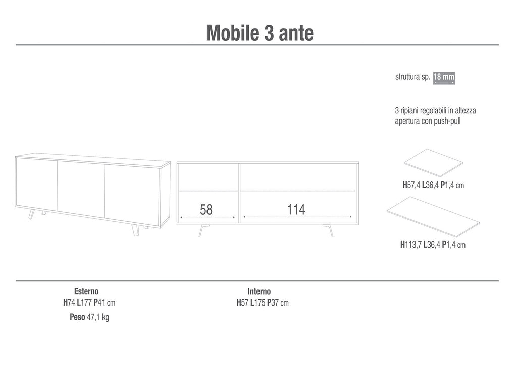 - Abmessungen (BxHxT): 177x74x41cm