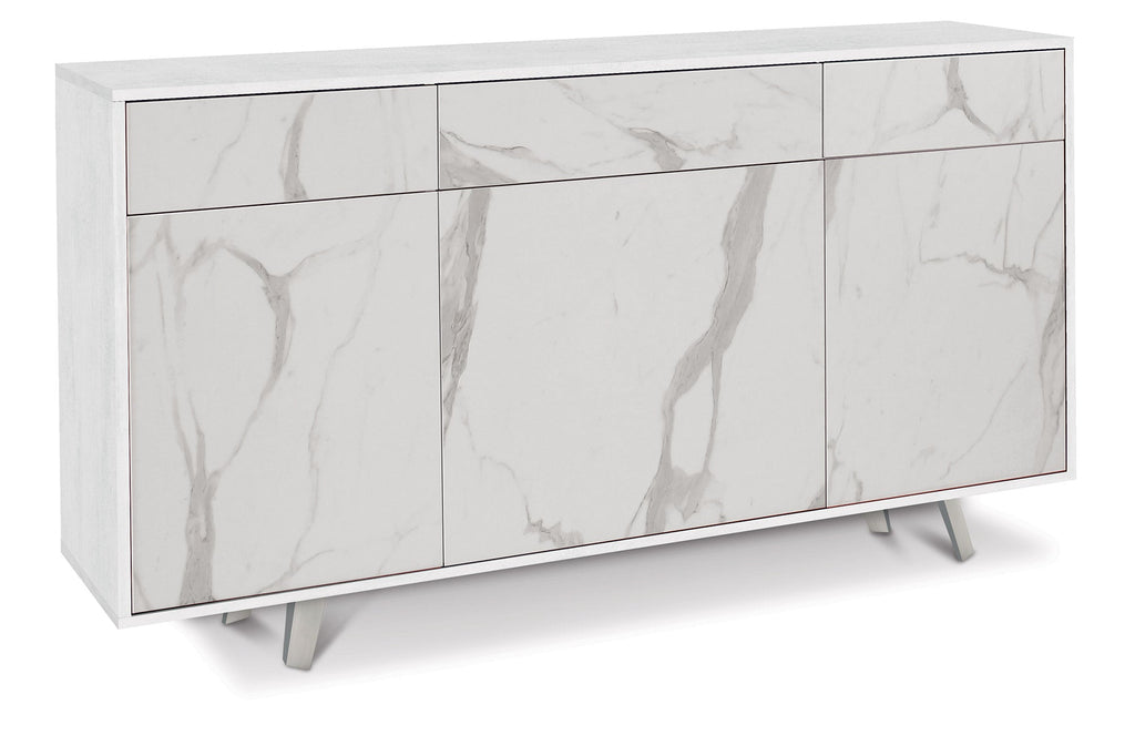 Schrank 3 Türen 3 Schubladen 164 x 92 x 41 cm Oxidweiß/Calacatta-Marmor