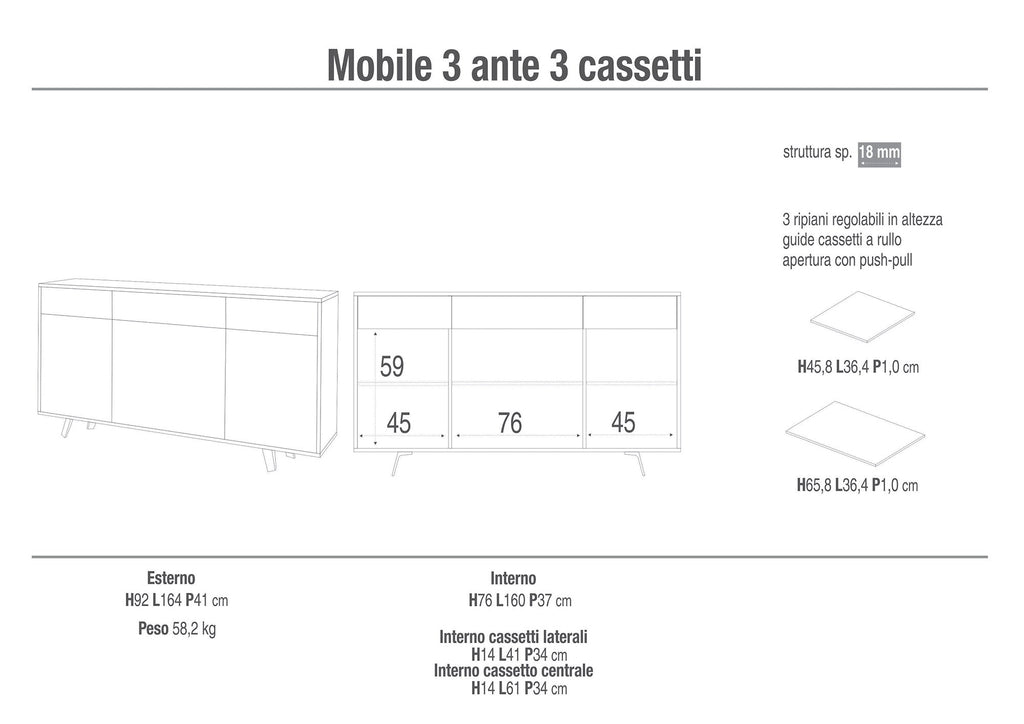 Schrank 3 Türen 3 Schubladen 164x92x41 cm Black Oxide/Calacatta Marmor