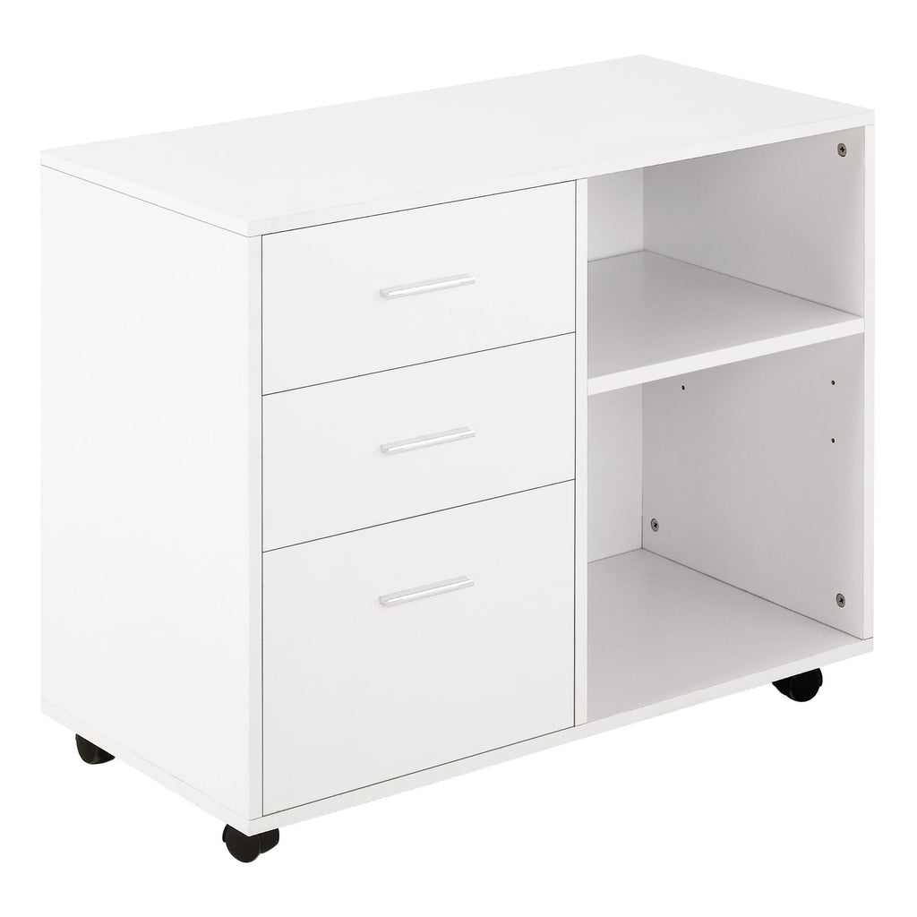 Sie haben wenig verfügbare Büroflächen? Machen Sie das Beste daraus mit diesem Druckerschrank. Die drei Schubladen und offenen Regale in verschiedenen Größen bieten Ihnen viele Lösungen für die Aufbewahrung von Papieren, Dokumenten, Schreibwaren, Scanner und Drucker. Außerdem können Sie ihn dank der 4 Räder ganz bequem bewegen. Machen Sie Ihr Büro mit diesem Druckerschrank effizienter.