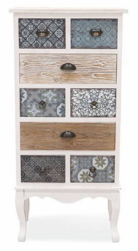 Schrank 8 Schubladen 58 x 35 x 123 cm aus antikem weißem Soriani-Holz
