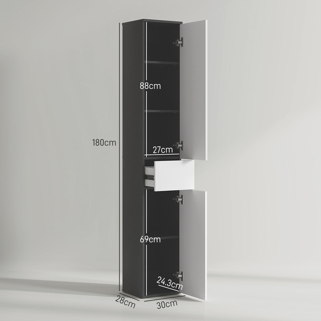 Mobile a Colonna da Bagno Salvaspazio con 2 Armadietti e Cassetto 30x28x180 cm Nero e Bianco