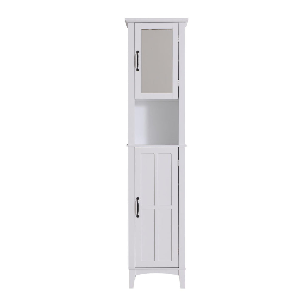 Platzsparende Badsäule mit Spiegel aus weißem Holz 40x30x170 cm