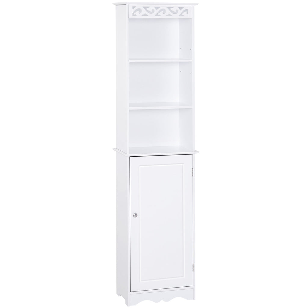 Dieses aus MDF mit frischer weißer Lackierung gefertigte Gerät ist so gebaut, dass es viele Jahre lang eine tragende Säule Ihres Badezimmerdekors sein wird, mit drei offenen Regalen oben und einem geräumigen Schrank darunter mit verstellbaren Regalen, in dem Sie all Ihre Sachen verstauen können Toilettenartikel, Handtücher, Make-up und mehr mit Leichtigkeit.