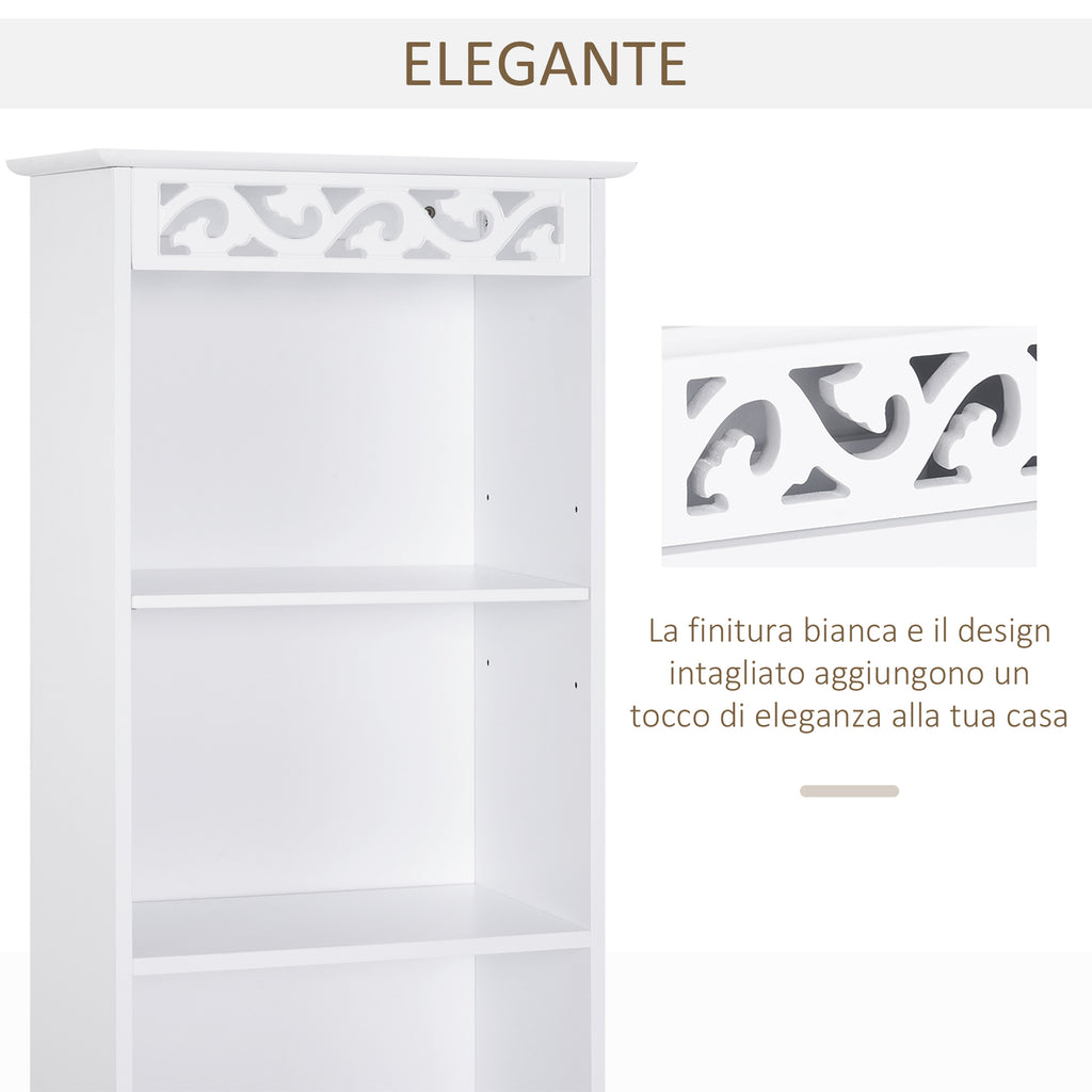 Säulenschrank für Badezimmer aus Holz mit weißer Blumenschnitzerei 40x23x160 cm