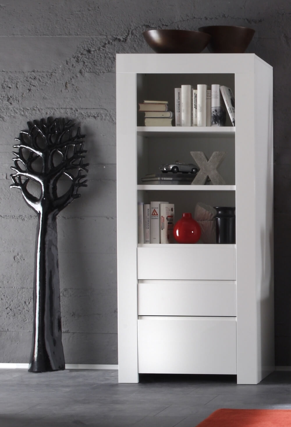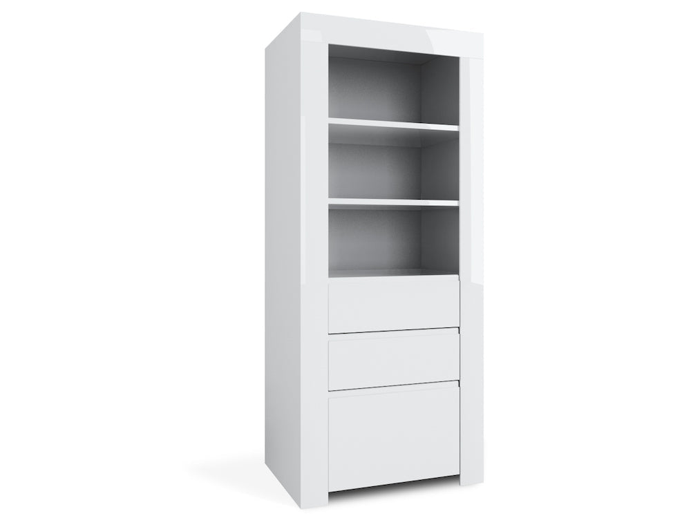 Hochschrank 1 Tür 2 Schubladen und 3 offene Regale 71,5 x 50 x 170 cm TFT Amber Glossy White