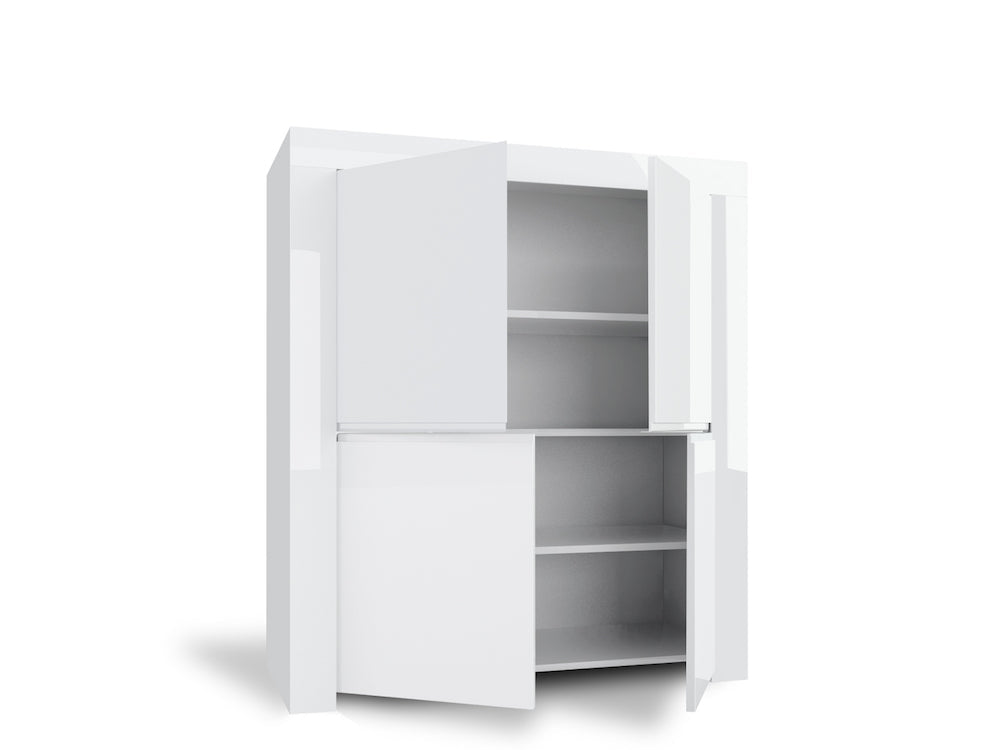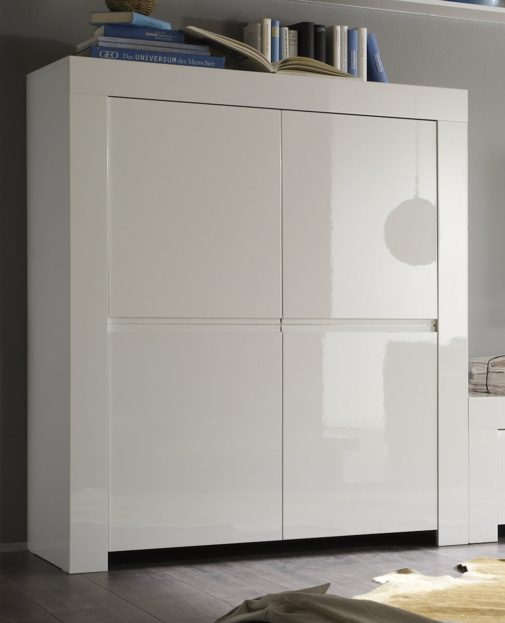 Schrank 4 Türen und 4 Einlegeböden 118,5 x 50 x 140 cm TFT Amber Glänzend Weiß