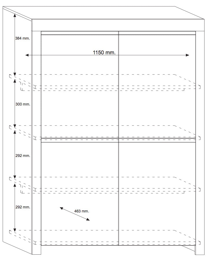 Schrank mit 4 Türen und 4 Einlegeböden, geriffelten Griffen und kratzfestem TFT-Finish Amber SeriesMerkmale: