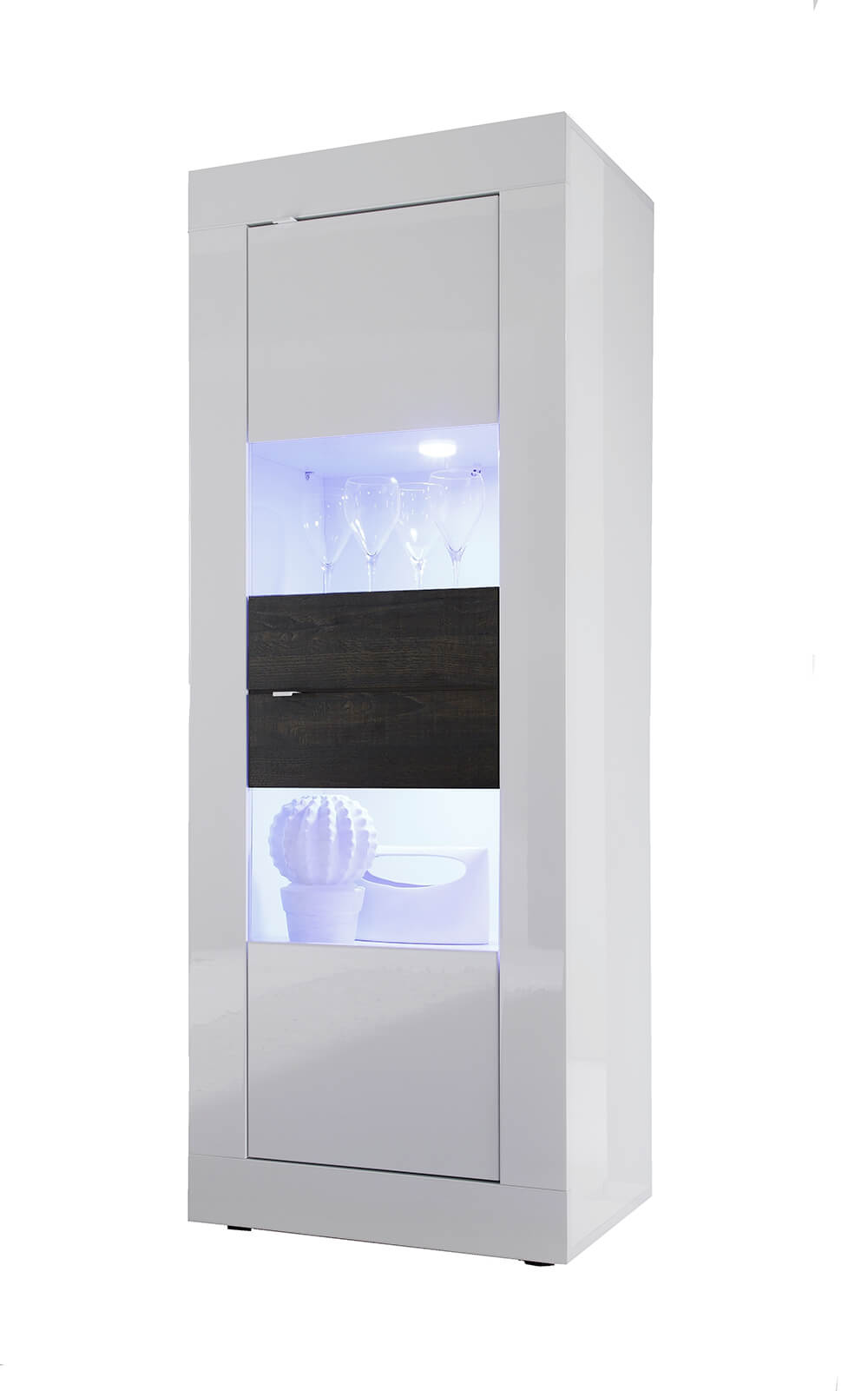 Wohnzimmer-Hochschrank 2-türig 61x43x162cm TFT Basic Glänzend Weiß und Eiche Wenge