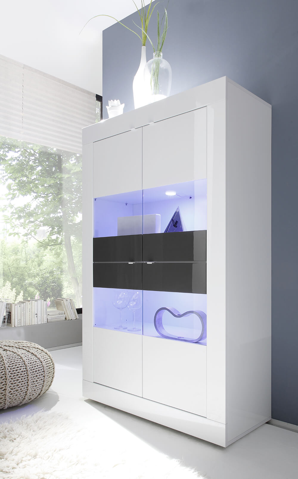 Wohnzimmer Hochschrank mit 4 Türen und Glaseinsätzen 102x43x162cm TFT Basic Glänzend Weiß und Glänzend Anthrazit