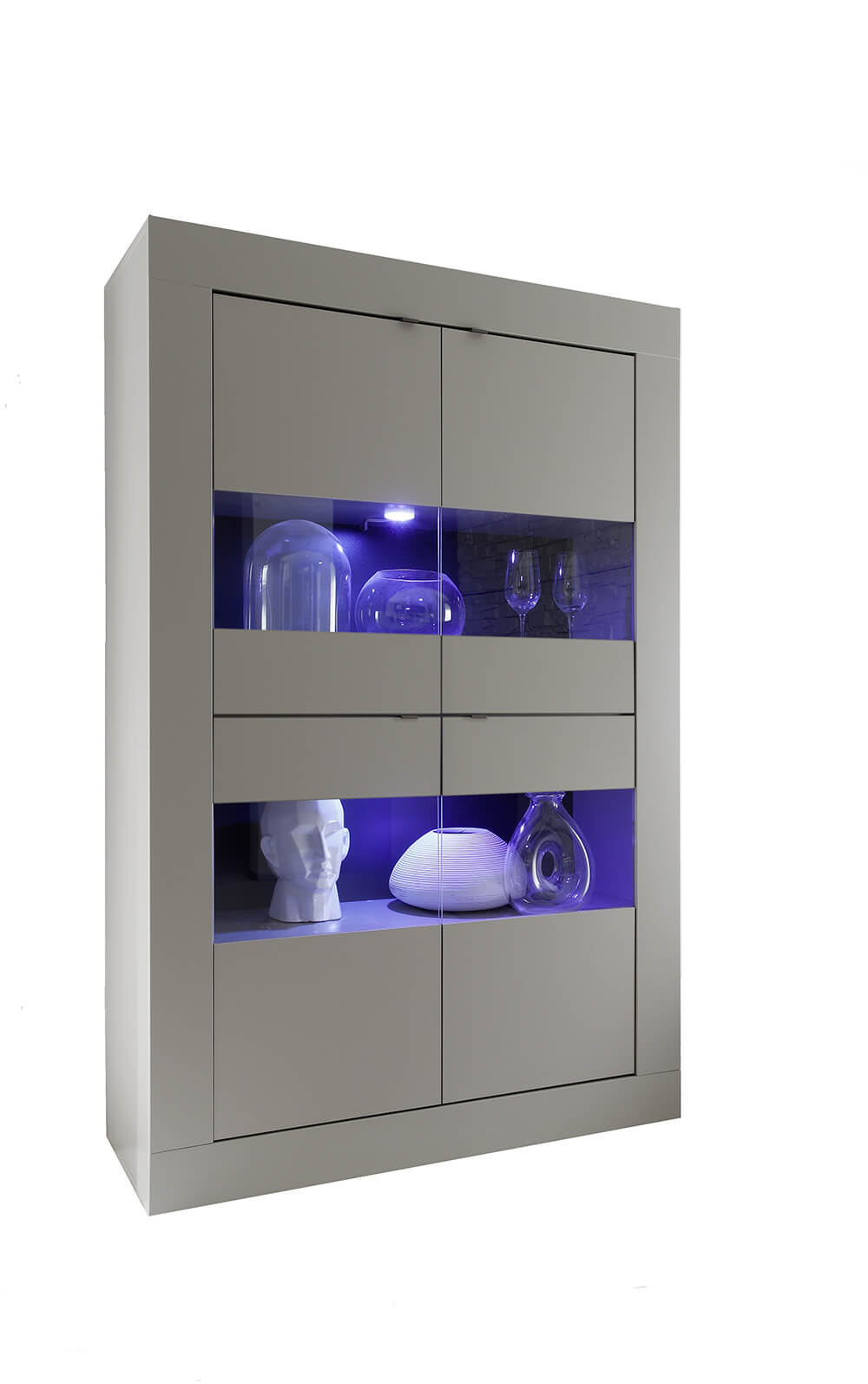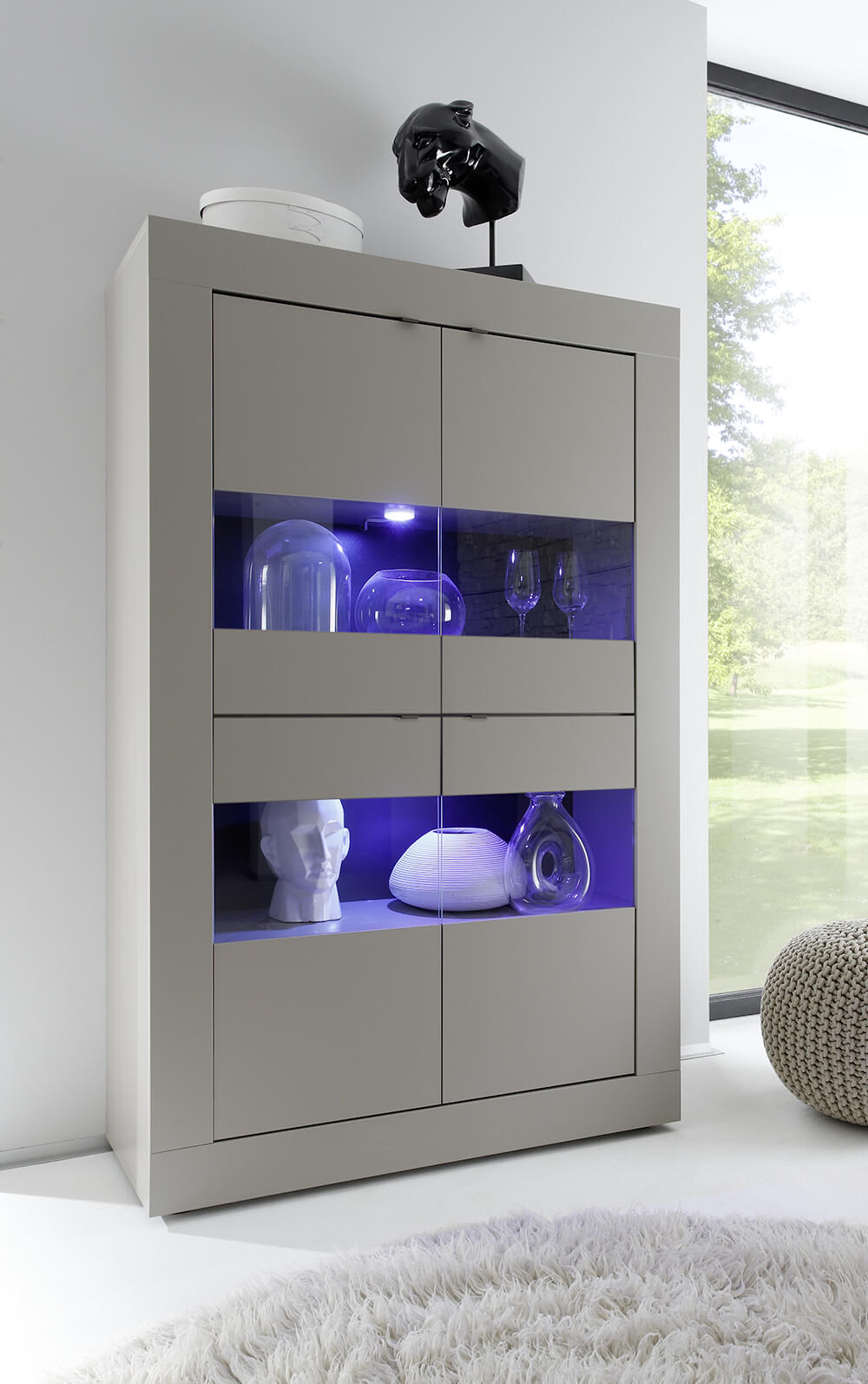 Hoher Wohnzimmerschrank mit 4 Türen und Glaseinsätzen 102 x 43 x 162 cm TFT Basic Pewter