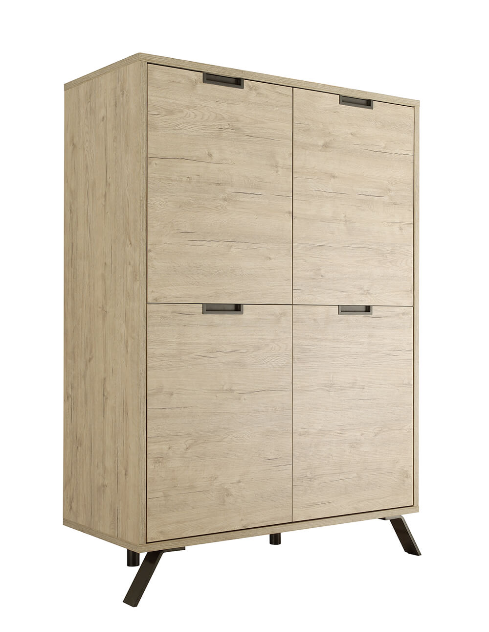 Hoher Wohnzimmerschrank mit 4 Türen 148 x 106 x 50 cm TFT Sherwood Oak Palm