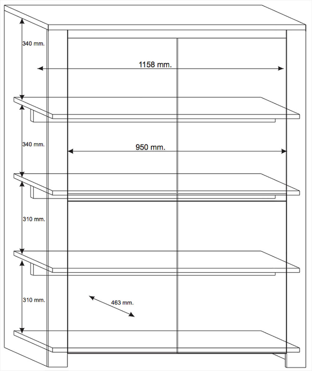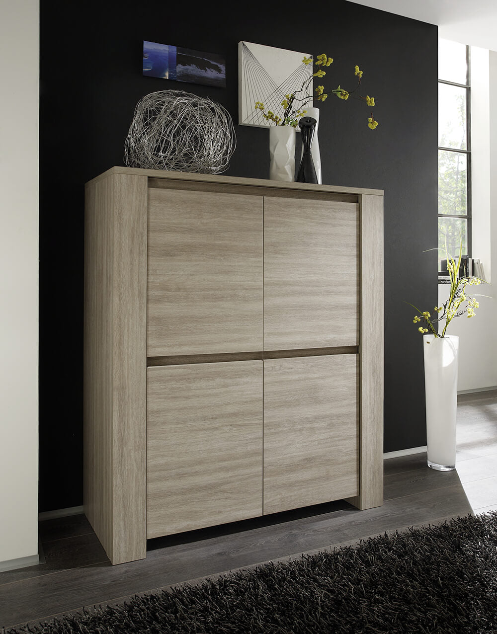 Wohnzimmer Hochschrank 4 Türen 4 Einlegeböden 142x119x51cm TFT Elba Eiche