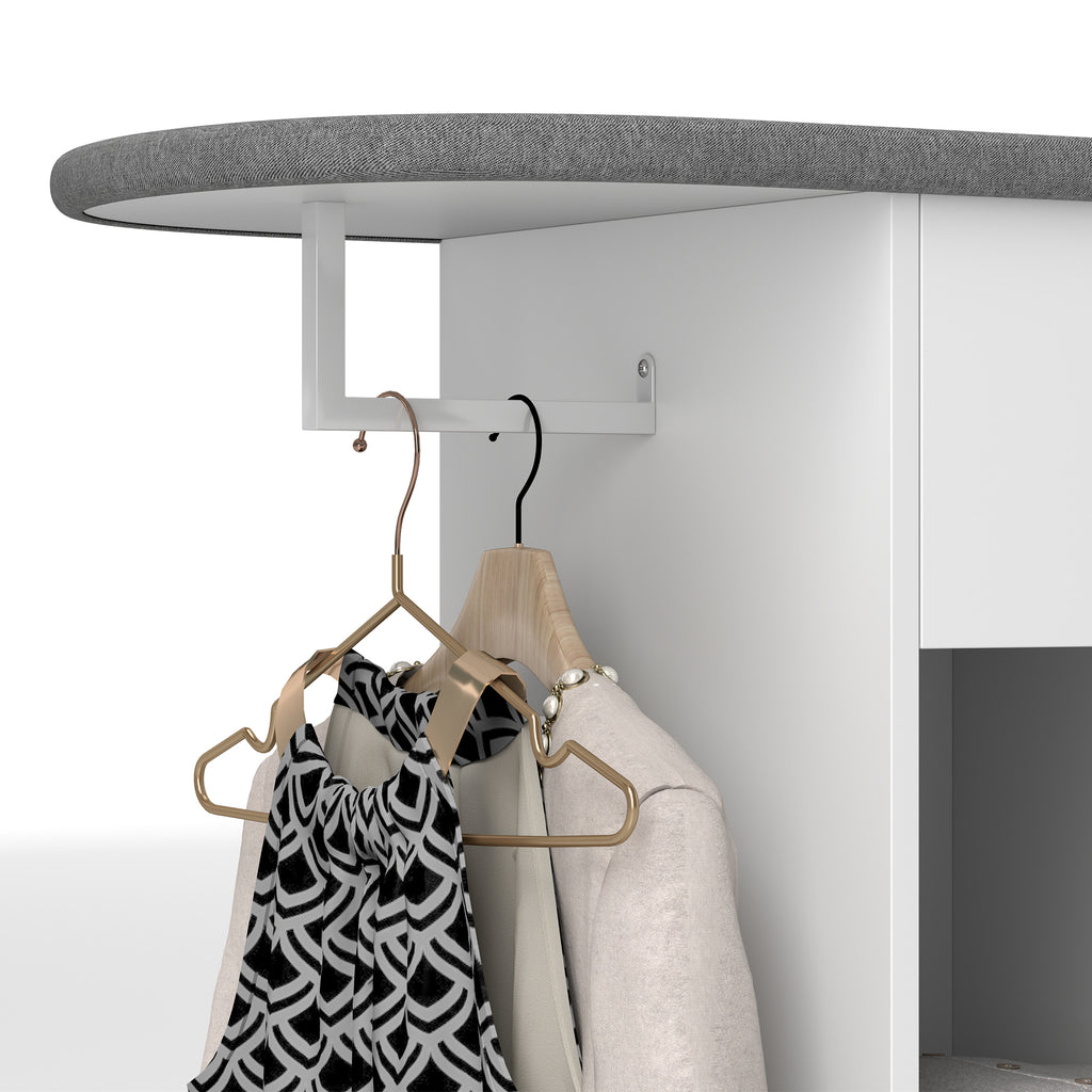 - SPAZIO ORGANIZZATO: Il mobile da stiro ha un'asta per vestiti di 44.5L x 82A cm per appendere i tuoi capi, un cassetto e due vani con ripiano regolabile, per organizzare indumenti piegati. L'asta a L si trasforma facilmente in un supporto temporaneo