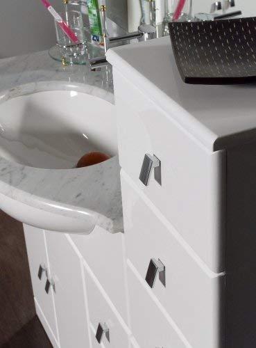 Badezimmerschrank 80 cm Marmorwaschbecken und glänzend weißer Rizzetti Star Spiegel