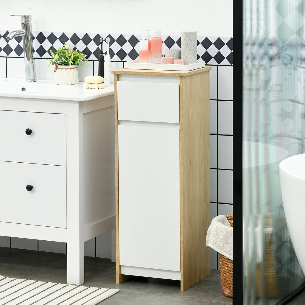 Mobile Bagno con Cassetto e Armadietto con Ripiano Regolabile Interno 32,6x30x90 cm in MDF Bianco e legno naturale