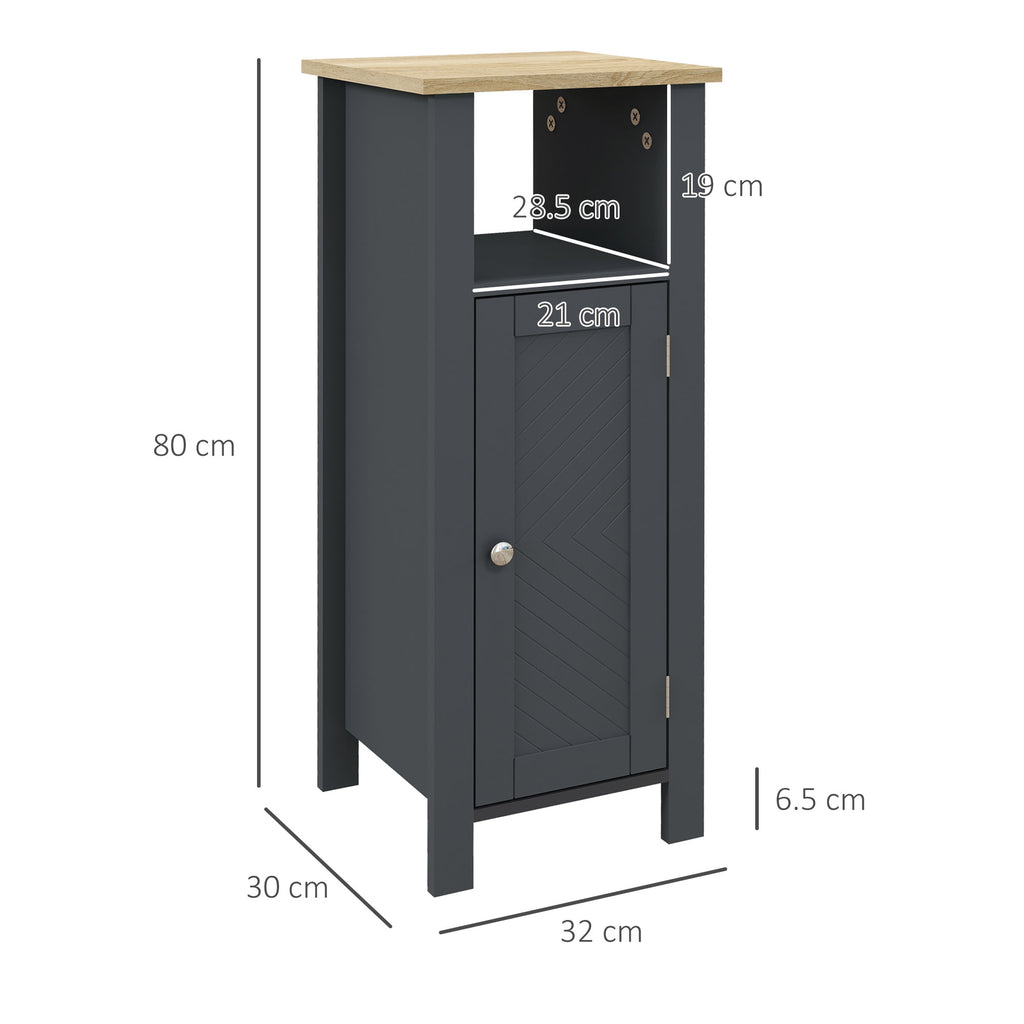 Nel tuo bagno lo spazio non basta mai? Con questo mobiletto bagno estendi lo spazio a disposizione per riporre i tuoi oggetti quotidiani. È composto da un armadietto con mensola interna regolabile, un ripiano aperto e un pratico piano d'appoggio superiore, e realizzato con solidi pannelli in MDF e legno truciolare. Questo mobile bagno ha dimensioni compatte, che ti consentono di posizionarlo anche in piccole stanze. Rinnova il tuo bagno con stile e praticità!