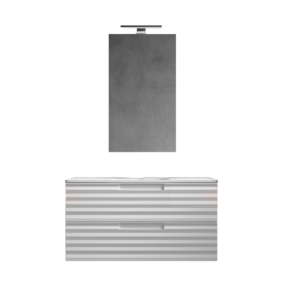 Mobile bagno sospeso 100 cm Bianco ondulato Denver con Specchio Bonussi