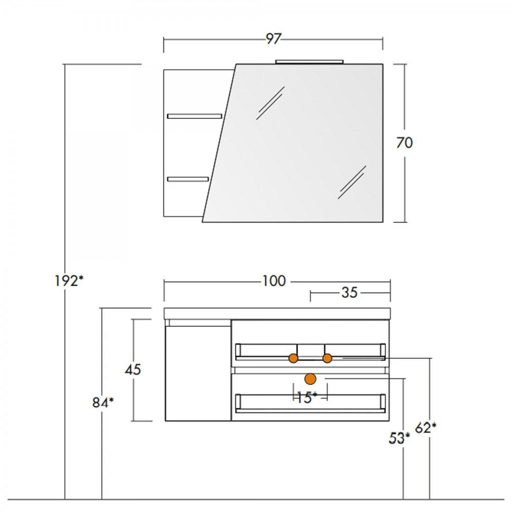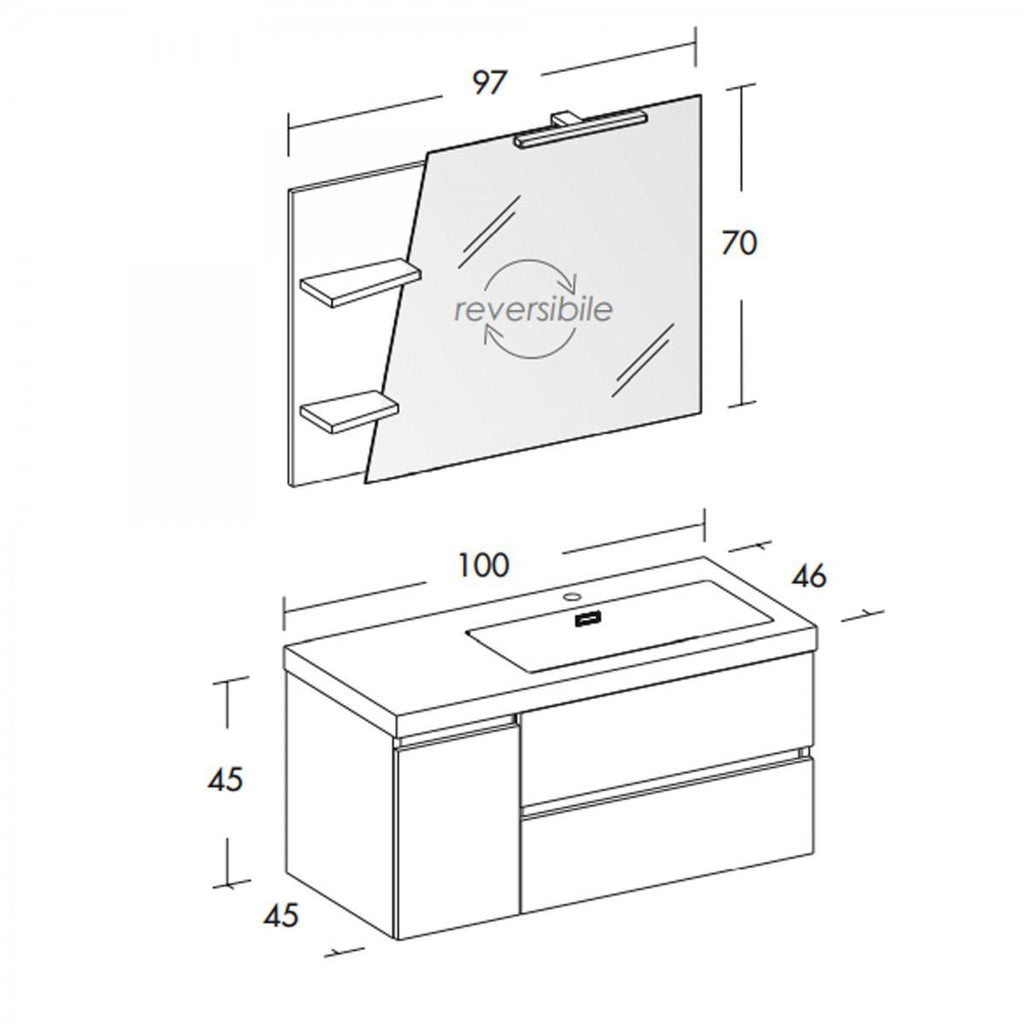 Hängender Badezimmerschrank 100 cm Bonussi Pegaso Weiß Waschbecken und Spiegel