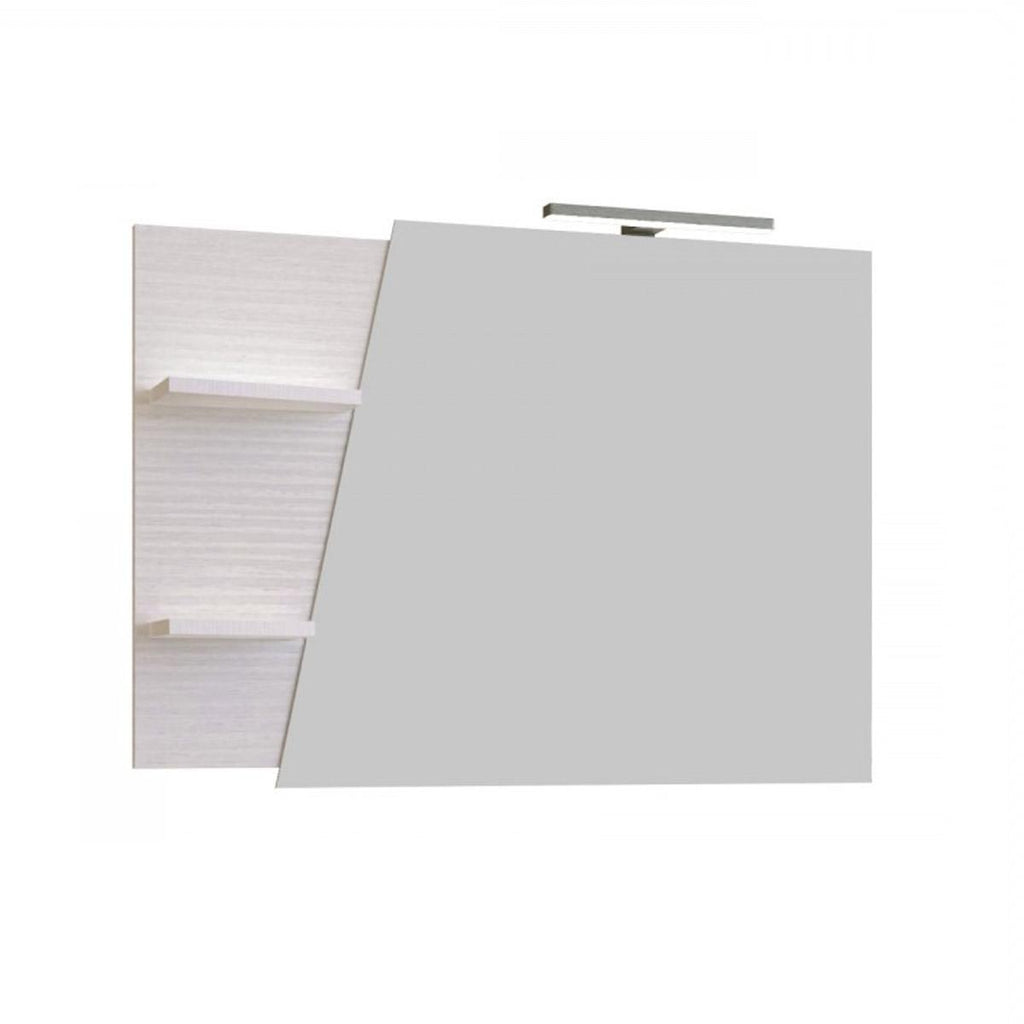 Hängender Badezimmerschrank 100 in weißer Lärchenfarbe mit Waschbecken aus GLOSSY OCRITECH ACRYLIC HARZ mit großem rechteckigem Becken. Ausgestattet mit einem Spiegel mit polierter Kante und einem Einsatz aus weißer Lärche mit zwei integrierten Regalen. Chrom-LED-Lampe mit natürlichem Licht. Schubladen mit Kehlöffnung, ausgestattet mit kalibriertem Soft-Close-Verschluss, Soft-Close-Tür