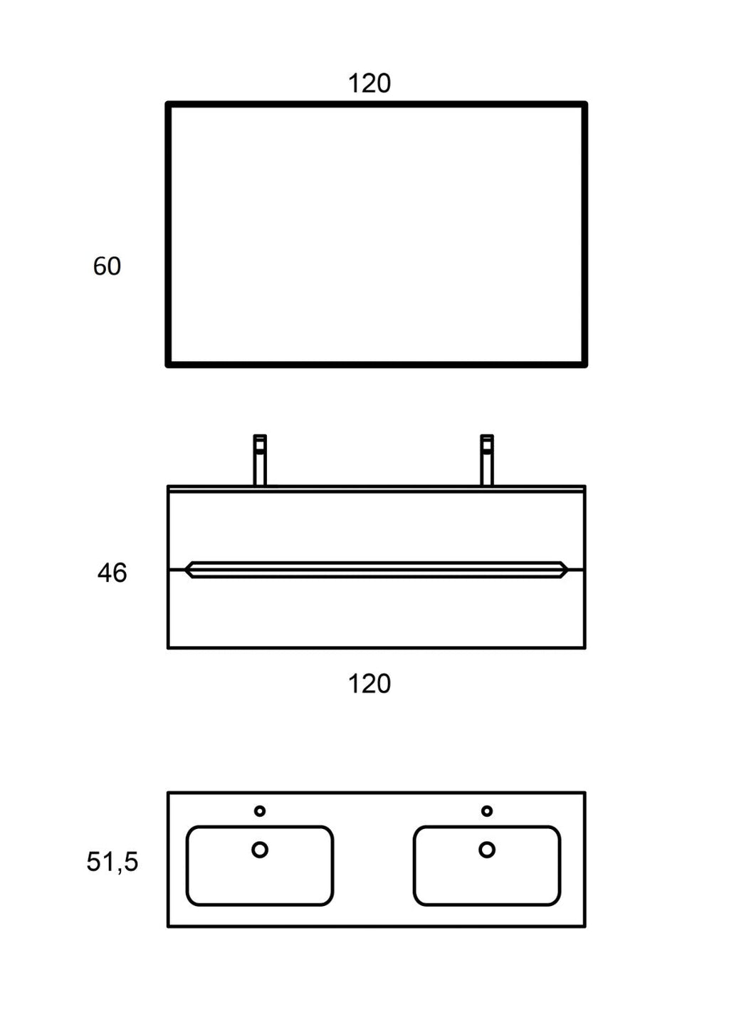 Badezimmer-Hängeschrank 121 cm TFT Swing White Oak