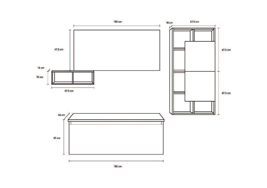 Badezimmer-Hängeschrank 7 Elemente in Melamin 180x46,5x190cm TFT Ibiza Weiß Grau