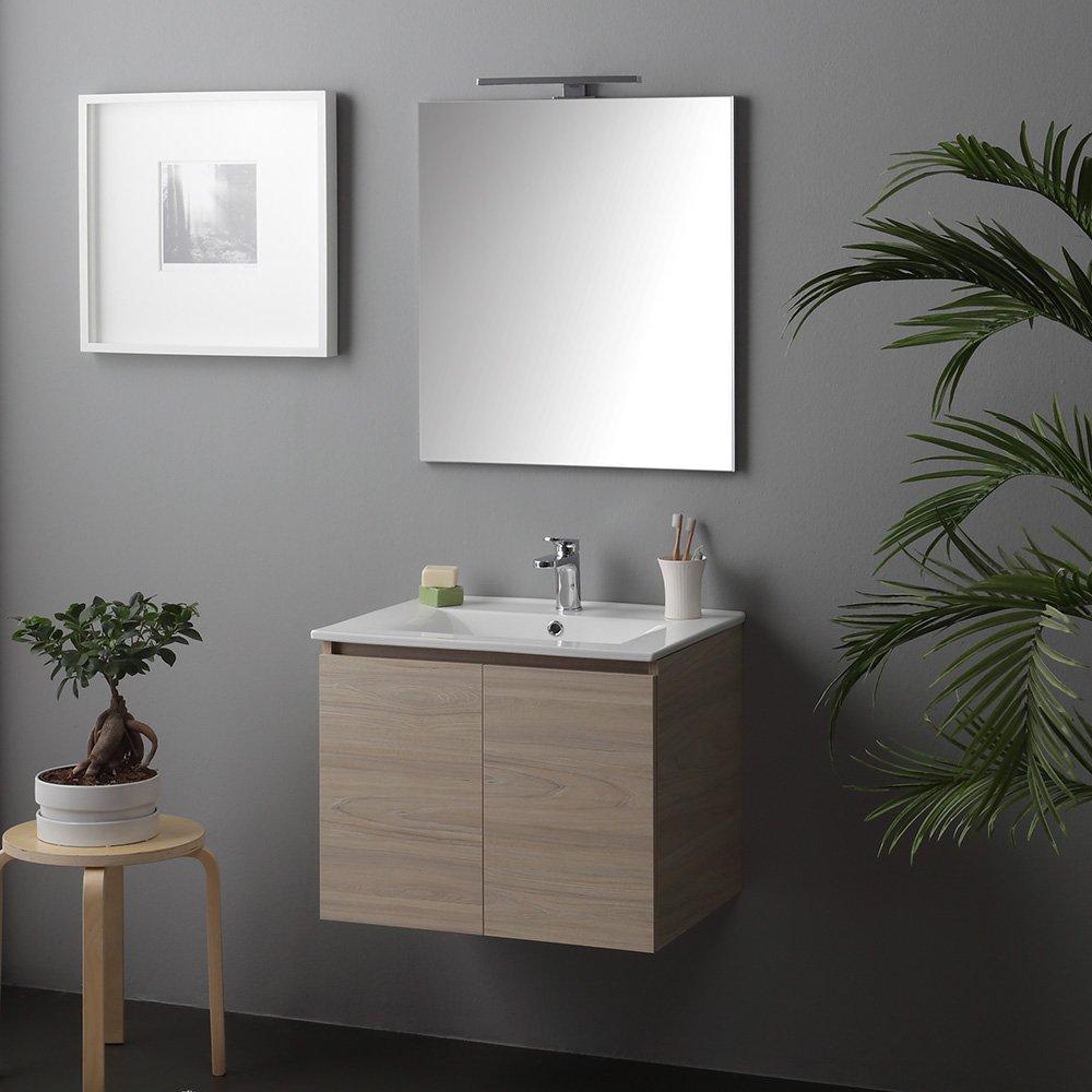 Abgehängter Badezimmerschrank 60 cm Waschbecken 2 Türen + LED 30 cm Rizzetti Gibson Oak