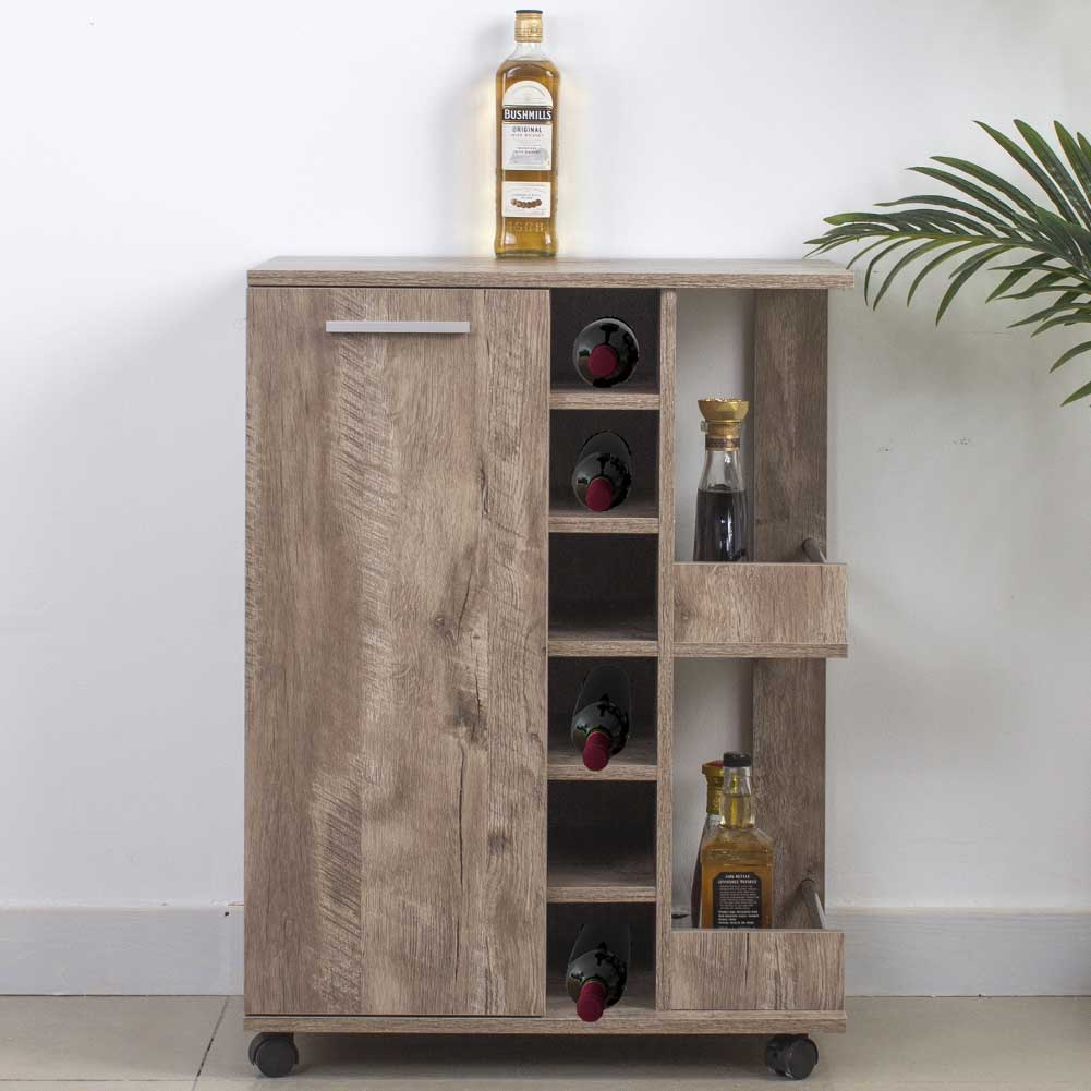 Mobile Bar Cantinetta Bottiglie Vino Legno Cantina 6 Posti Porta Calici Tortora
