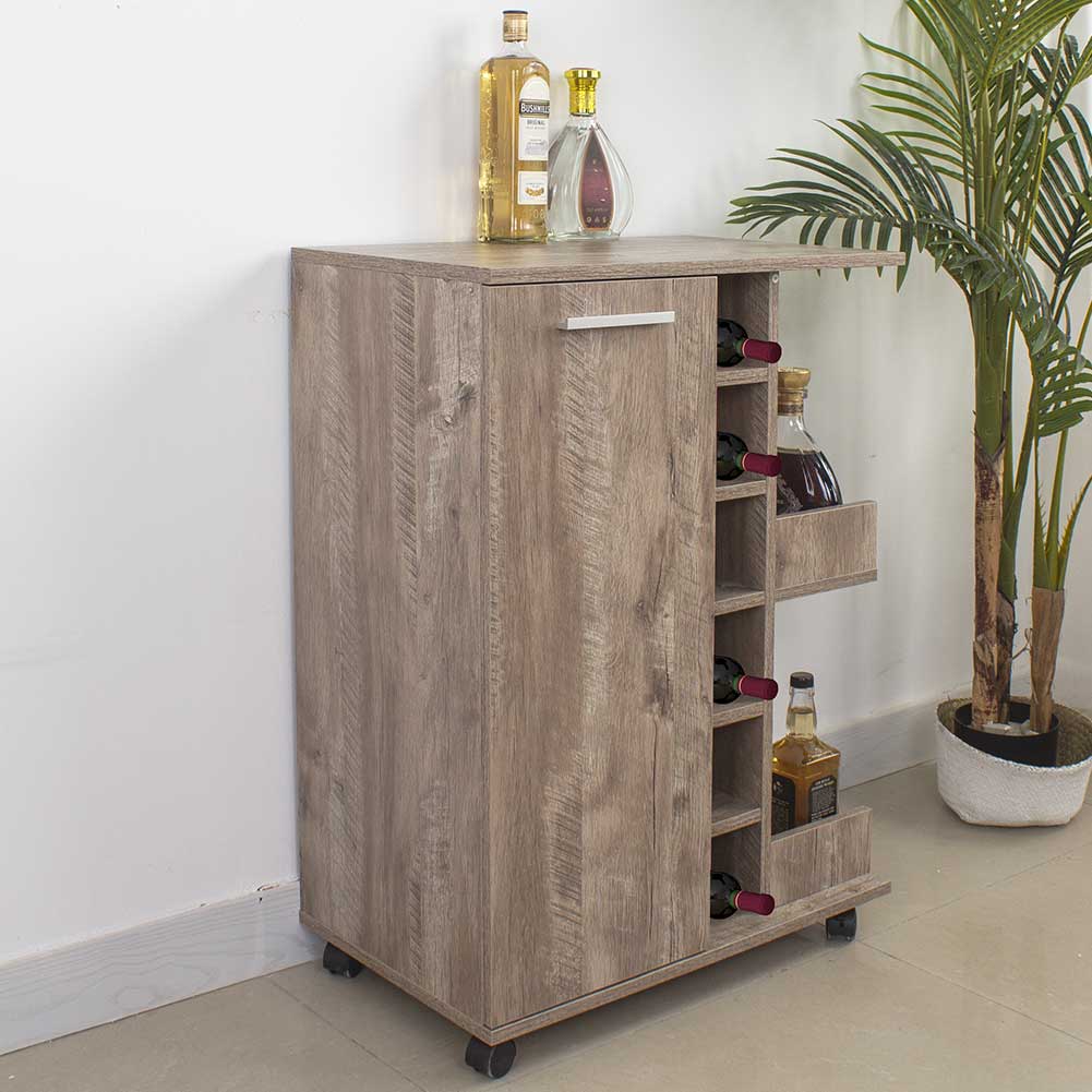 1 x Mobile Bar Cantinetta Bottiglie Vino Legno Cantina 6 Posti Porta Calici Tortora