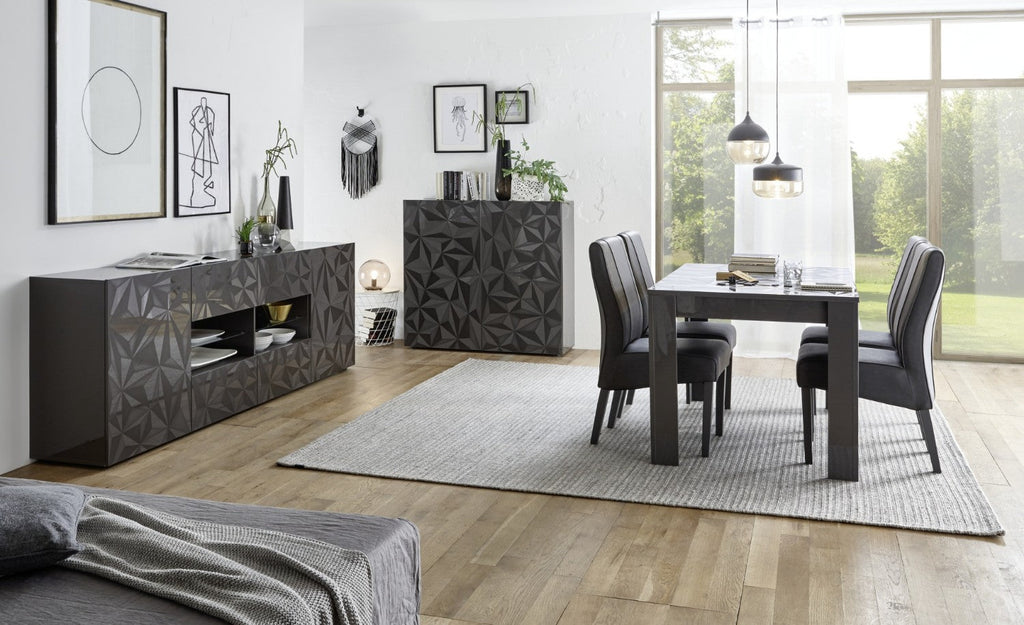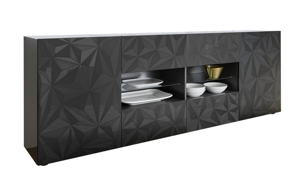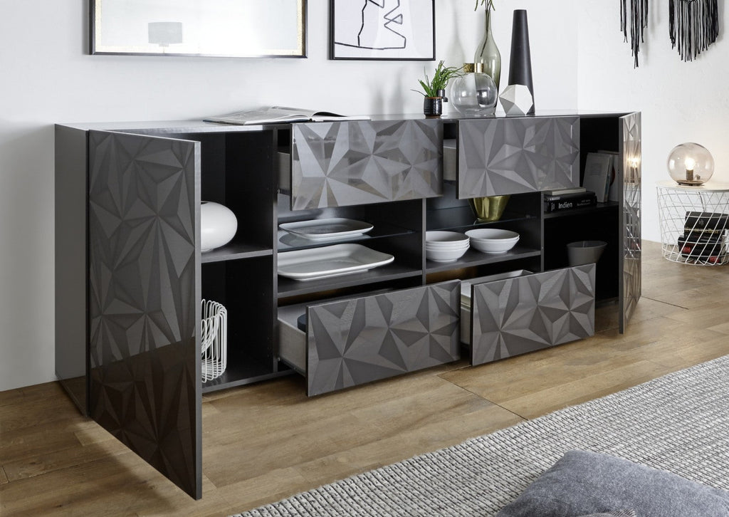 Buffetschrank 2 Türen 4 Schubladen 240 x 42 x 84 cm aus poliertem schwarzem Prager TFT-Holz