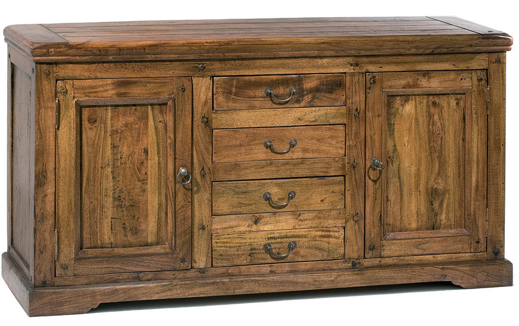 Sideboard aus hellem antikem Akazienholz mit 2 Türen und 4 Schubladen cm 150x45H80