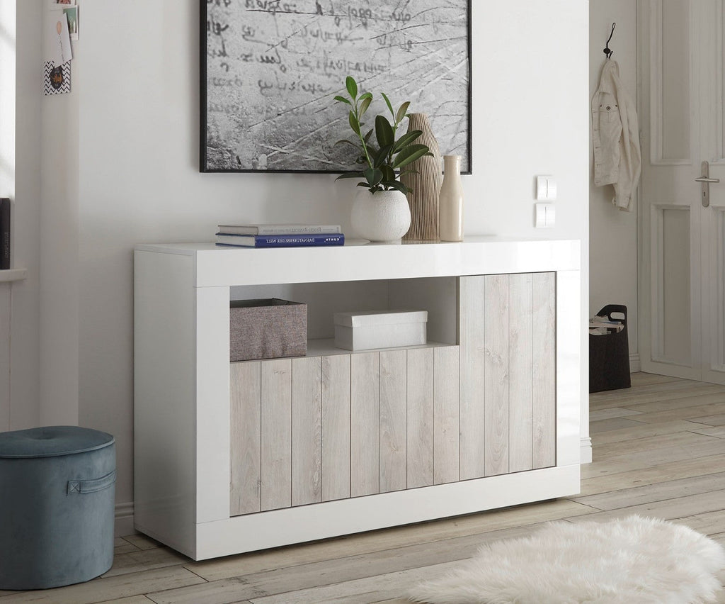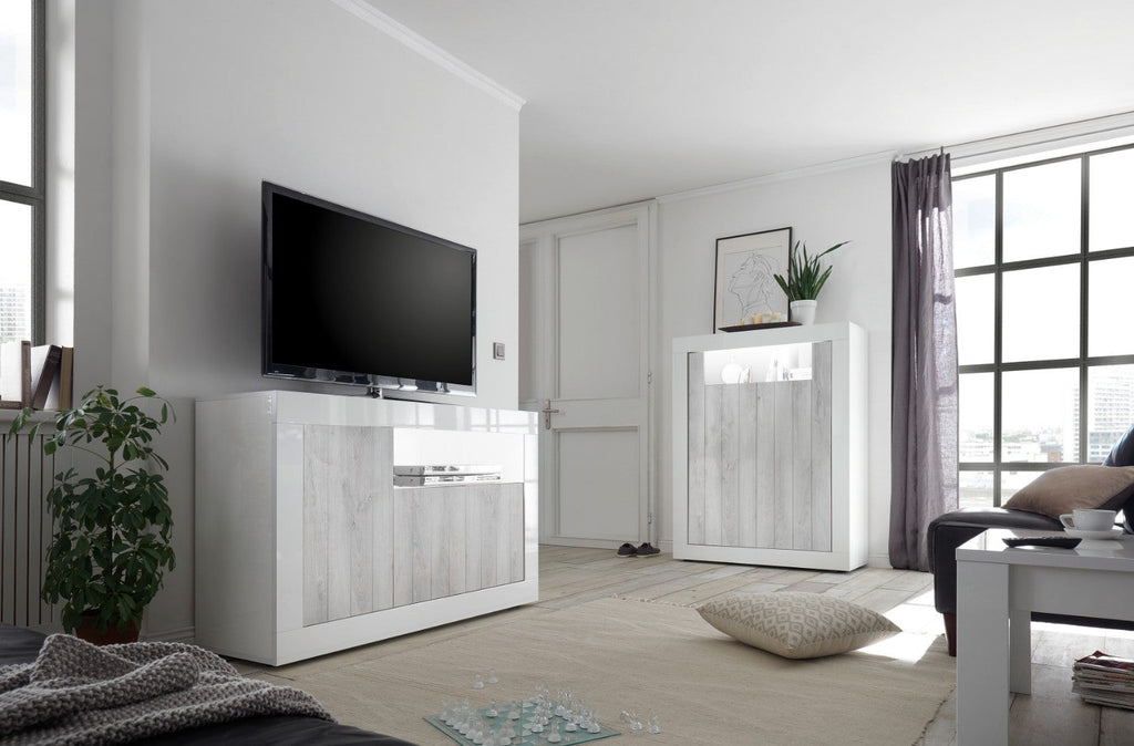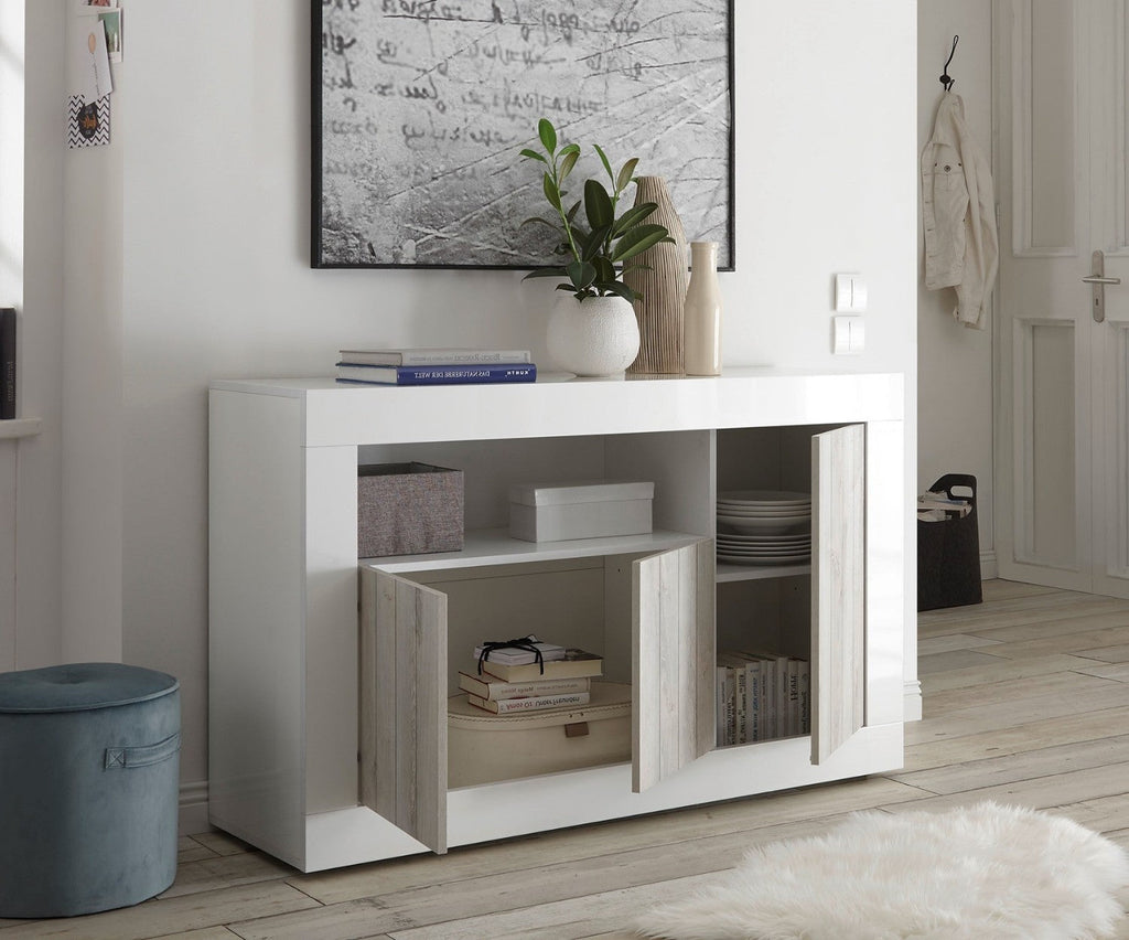 Buffetschrank 3 Türen 138x42x86 cm in Lipari Weiß TFT Holz und Kiefer