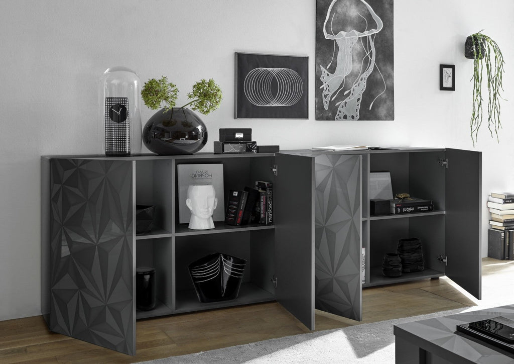Buffetschrank 4 Türen 241 x 42 x 84 cm aus poliertem schwarzem Prager TFT-Holz