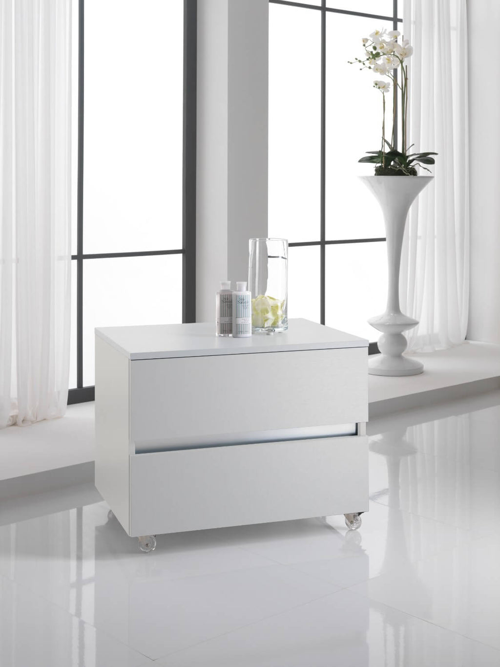 Mobile Kommode 2 Soft Close Schubladen aus Holz in Melamin 70x52x57cm TFT Bali White