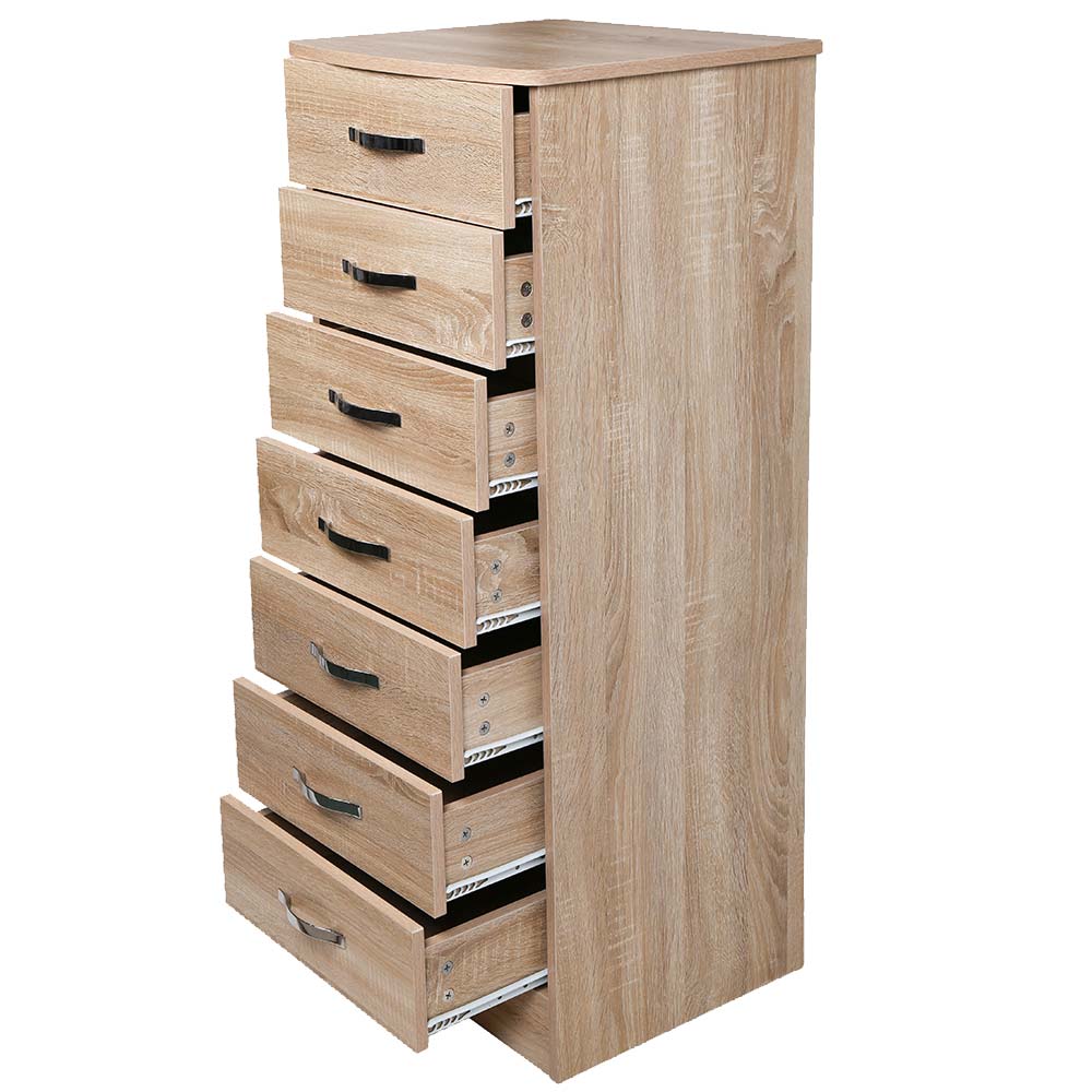 Mobile Cassettiera 7 Cassetti Settimino in legno MDF 46x42x116cm Quercia Moderno