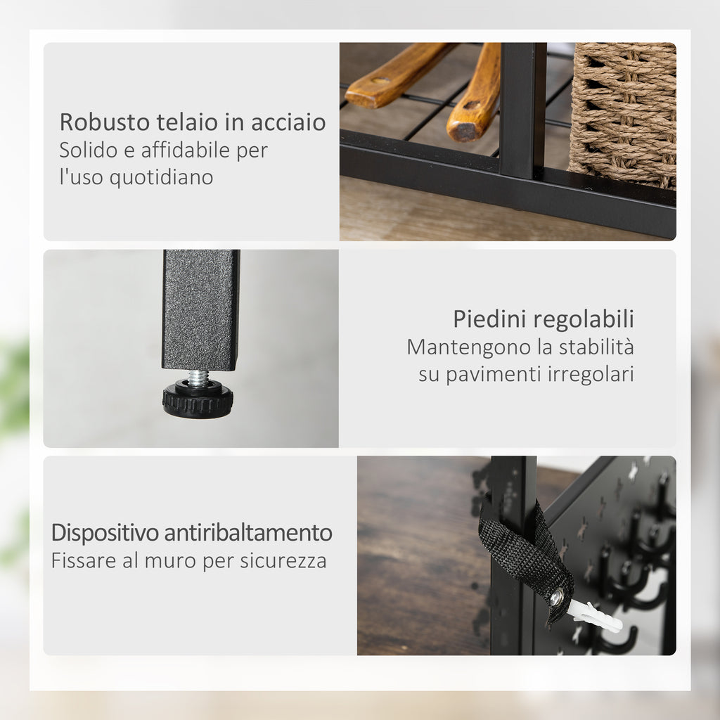 Küchenschrank mit 5 Haken 3 Regalen 4 Körben 83,5 x 39 x 133 cm aus MDF und braunem Stahl