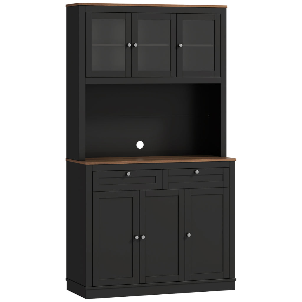 - VERSATILE: Questa credenza da cucina offre otto vani per riporre piatti, pentole e alimenti, oltre a due cassetti per tovaglioli, canovacci e posate. Il piano di lavoro ampio, dotato di passacavi, è ideale per elettrodomestici come il microonde o la macchina del caffè