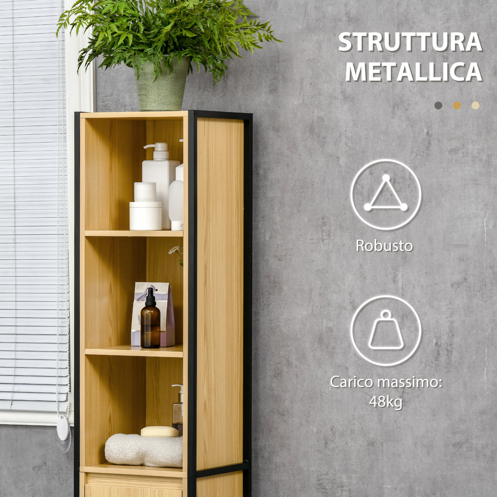 3-stöckiger Badezimmerschrank mit Handtuchturm 30 x 28 x 168 cm Spanplatte und schwarzer Stahl