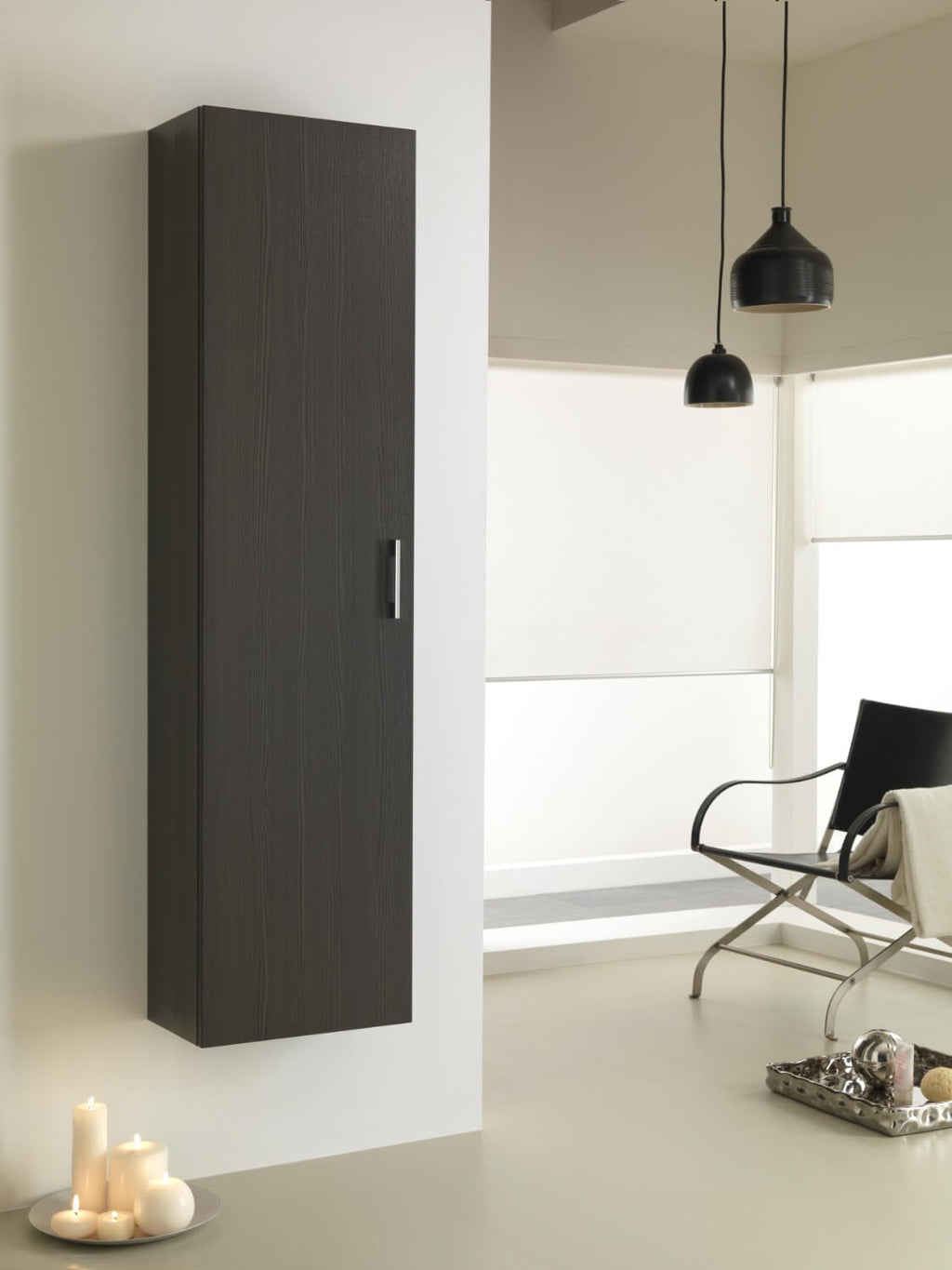 Säulen-Badezimmerschrank 1 Tür in Melamin 40 x 32 x 160 cm TFT Giava Pine Grey
