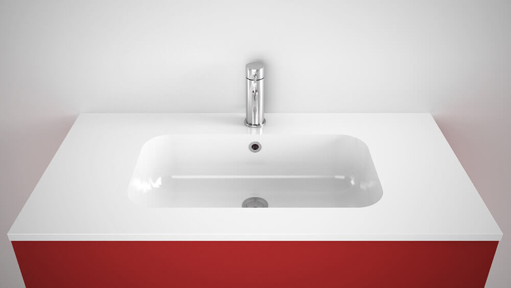 - Glänzend weißes Stonelight-Oberteil mit integriertem Waschbecken und Überlauf