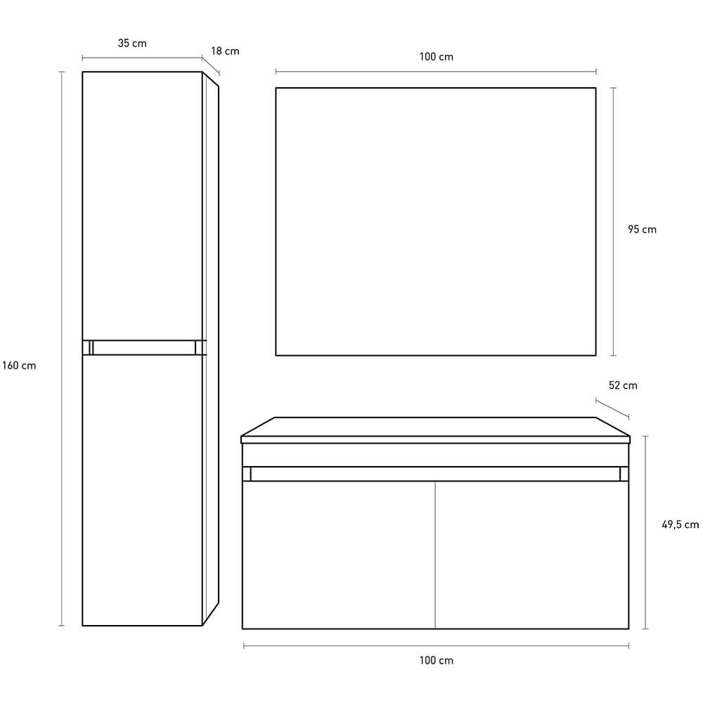 Bali 06 Maxi hängende moderne Badmöbel komplett mit Hängesäule, Hängeschrank mit Stonelight-Waschbecken und Spiegel mit Beleuchtung.