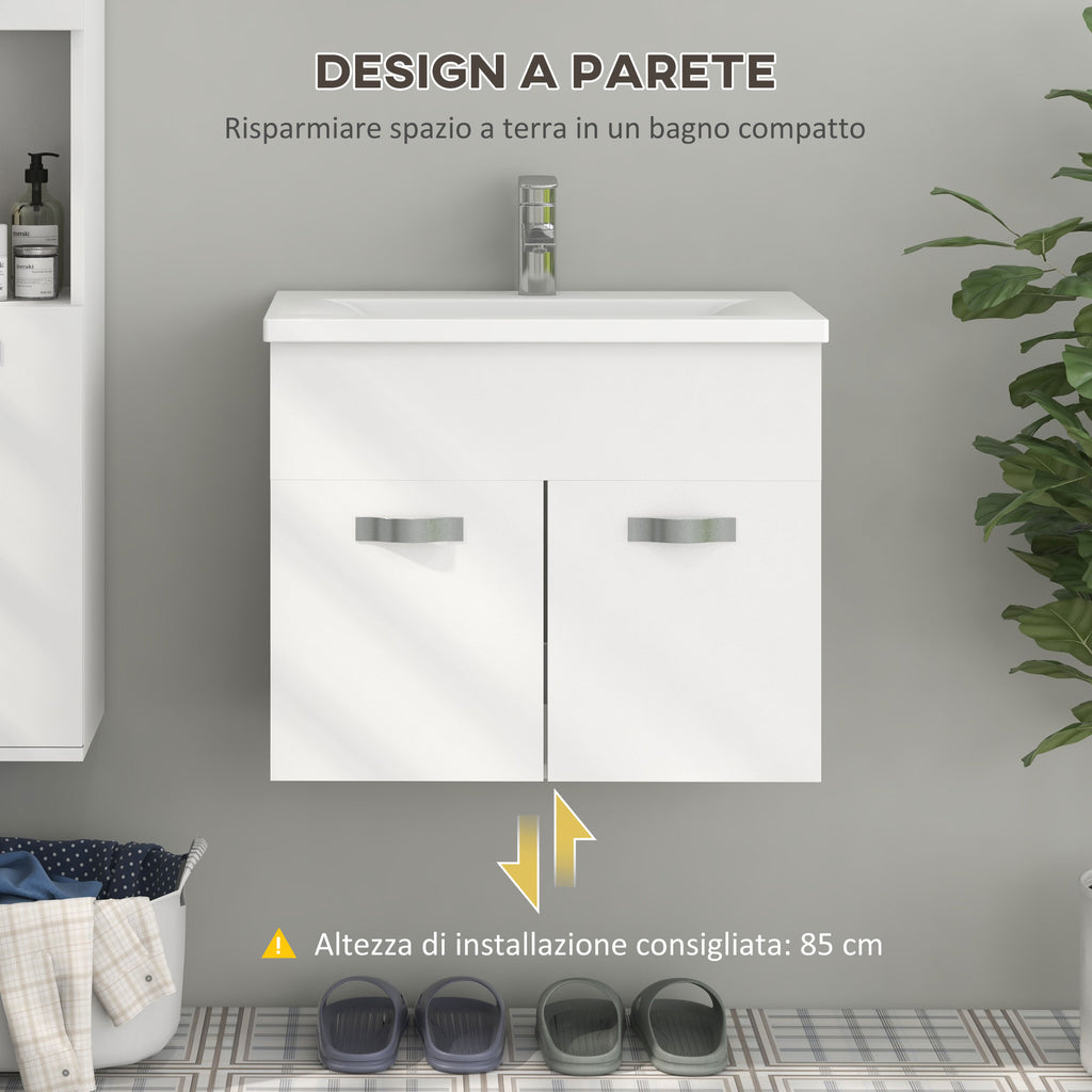 Mobile da Bagno Sospeso con Lavabo in Ceramica 61x40x50 cm Bianco Lucido