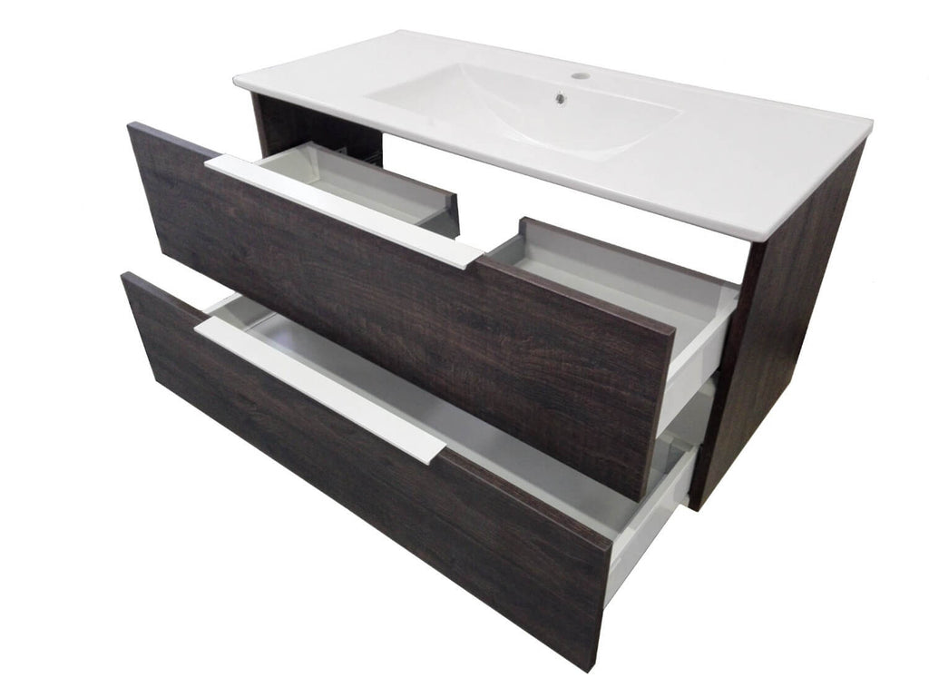 Badezimmer-Hängeschrank mit Spiegelwaschbecken und LED-TFT-Luna-LED-Lampe aus Wenge-Eiche