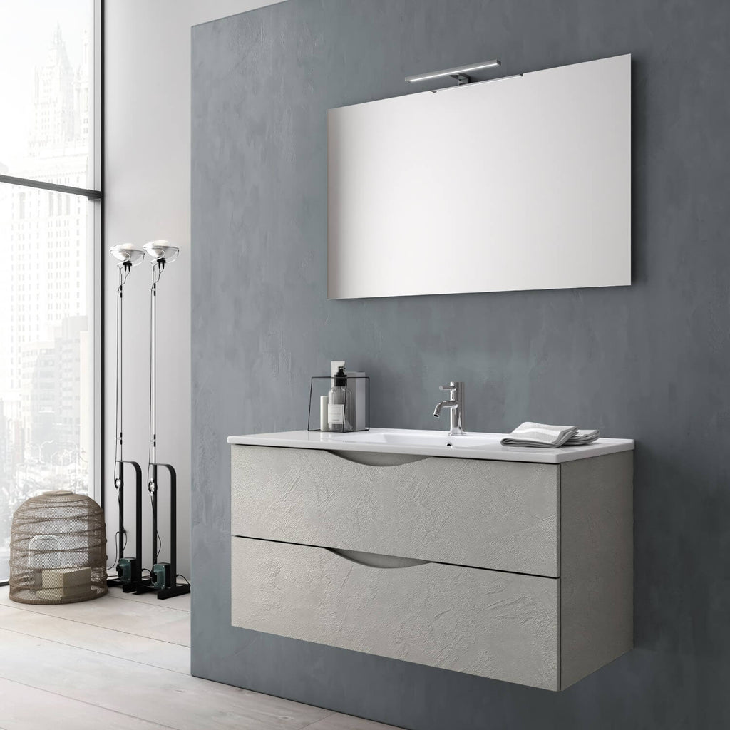 Badezimmer-Hängeschrank mit Spiegelwaschbecken und TFT-LED-Lampe in Steinoptik in Marte Grey