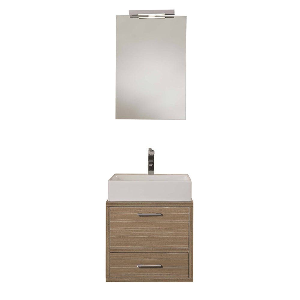 Giava 12 moderne Badmöbel komplett mit klappbarem Unterschrank und Keramikwaschbecken, Spiegel und LED-Leuchte.