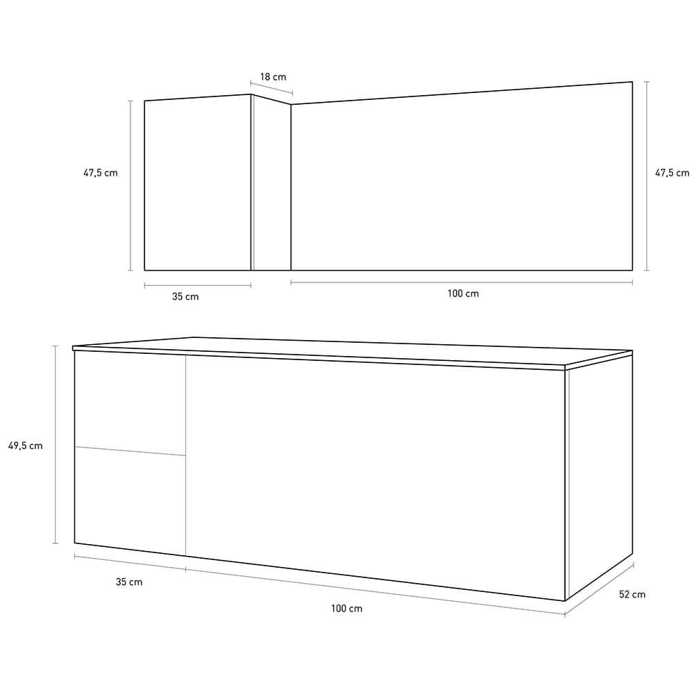 - Hängeschrank mit 1 Tür links 35x47,5x18 cm