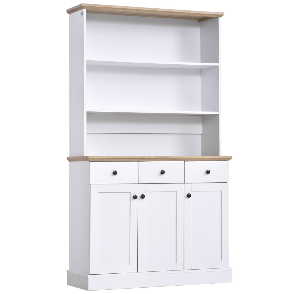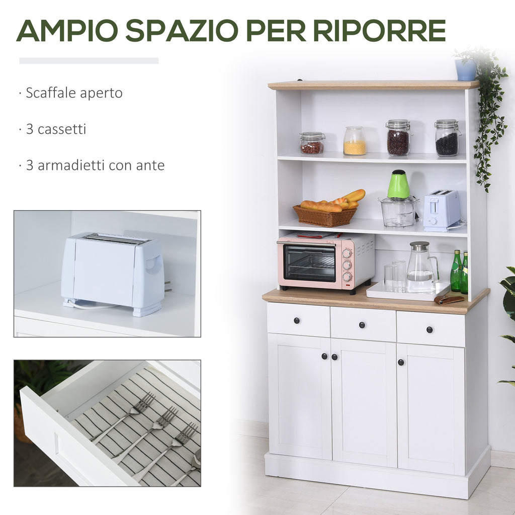 - VIEL PLATZ, DEN SIE BRAUCHEN: Mit 3 offenen Regalen, 3 Schubladen und 2 Schränken bietet er Ihnen allen Platz, den Sie brauchen, um Geschirr, Besteck und Tischdecken zu ordnen.